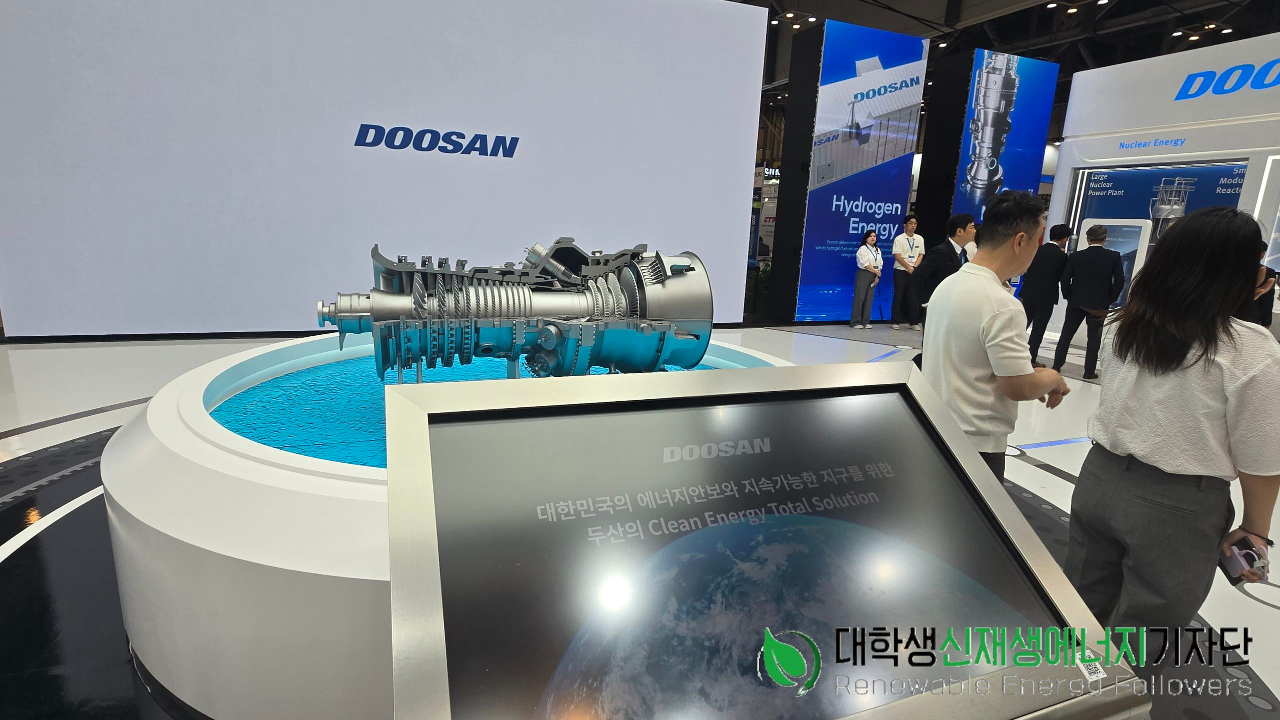 두산에너빌리티의 원자력 부스에서는 대형 원전과 차세대 원전으로 불리는 소형모듈원전(SMR)을 전시했다. 해당 부스에서는 전체적으로 대한민국 원전 기술이 매우 우수하며 국제적 경쟁력을 갖추고 있다는 점을 강조했다. SMR이 비록 대형 원전보다 소형화되었다고 해도 과연 주민 수용성 문제를 극복하고 원활하게 입지 부지를 선정할 수 있을지 묻는 질문에는 AI 발전과 산업의 전기화로 전력 수요가 증가하고 있고, 전기를 대량으로 소비하는 첨단 산업 단지를 중심으로 SMR의 입지에 대한 요구가 이미 존재한다며 이러한 수요를 고려할 때 SMR의 입지 부지 선정은 생각만큼 도전적이지는 않을 것이라는 답변을 받았다.