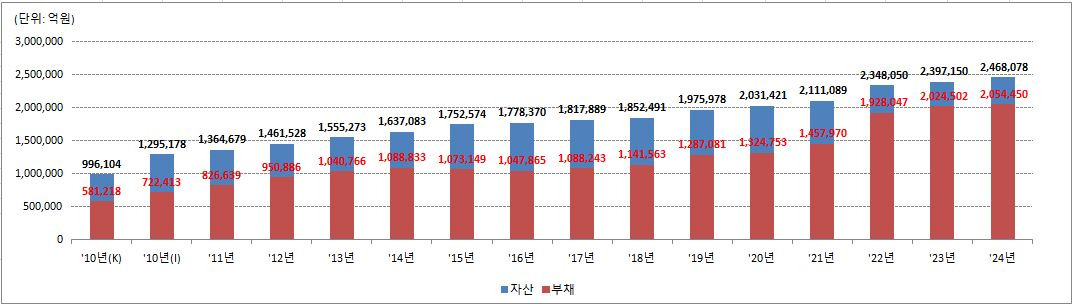 [자료 2. 한국전력공사 15년간 자산 및 부채 규모]