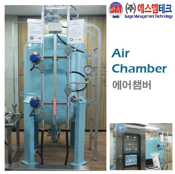 에어챔버는 배관 시스템 내의 급격한 압력변동 즉 수충격을 제어하기 위해 설치한다. 압력용기의 하부에는 물이, 상부에는 공기가 들어있다는 점이 특징이다. 원격제어가 이뤄져 전 세계에서 운용가능하다.